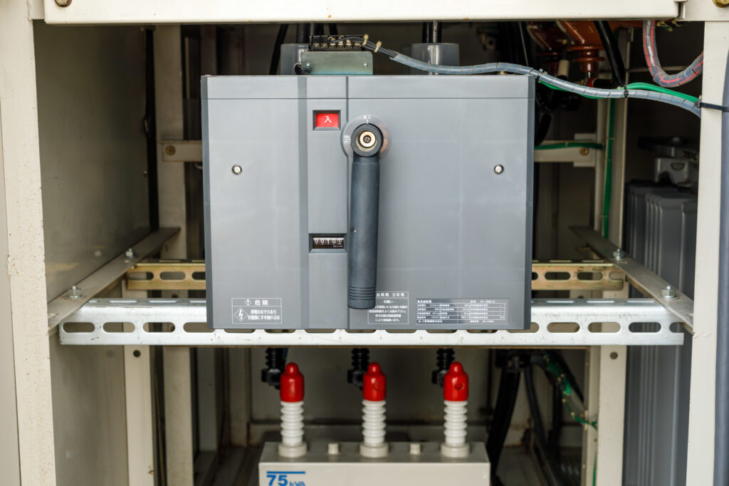 配電盤の最も重要な役割は、電力会社から送られてくる6600Vもの高圧電力を受電し、施設内で使用可能な100V/200Vの低圧電力に変換(変圧)することです。