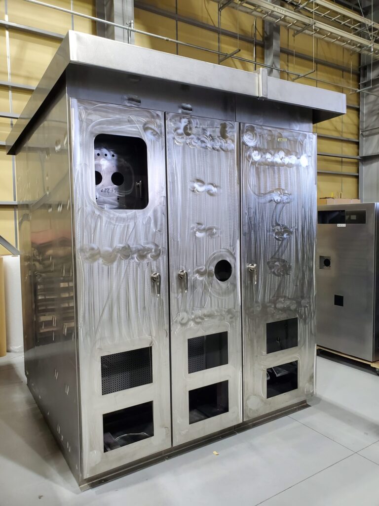 こちらは屋外で使用される大型トランス収納筐体の製作事例です。